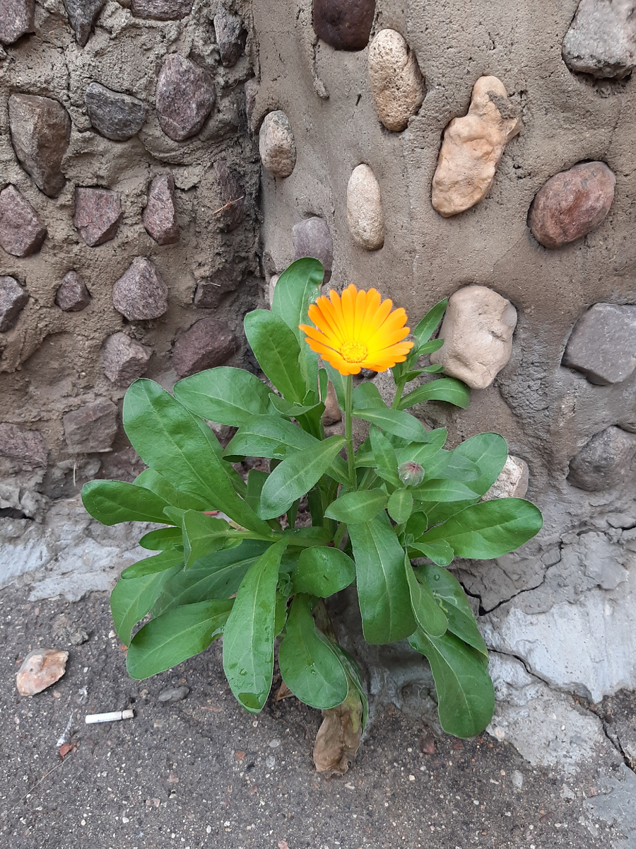 Уже конец октября, а он все еще жив. Год назад он был семечкой. Женщина сеяла под зиму семяна. Одно из них прилипло к ладоне. Женщина отряхнула руки. Семечко упало на асфальт, его подхватил ветер и хотел унести с собой. Но семечко провалилось в трещинку в асфальте, там и осталось среди земли, намытой в трещинку дождями. Всю зиму оно провело в асфальте во сне. Пришла весна. Тепло пробудило семечко и оно стало ростком. "Что же так греет? Я должен увидеть!" - подумал росток и стал тянуться к свету. Он шел откуда-то сверху. И росток потянулся к нему и стал цветком. Но прежде чем он распустился, прошло целое лето. И вот он видит солнце днем и луну ночью. Его стали замечать люди - красивый оранжевый цветок среди асфальта. Но пришли холода. "Неужели это всё?"- спросил цветок. Но созрели семена и упали в туже трещинку в асфальте.