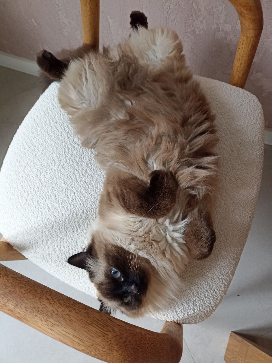 Давно не было рубрики "Мохнатый антистресс"! Моя Вишня отдыхает на стульчике)