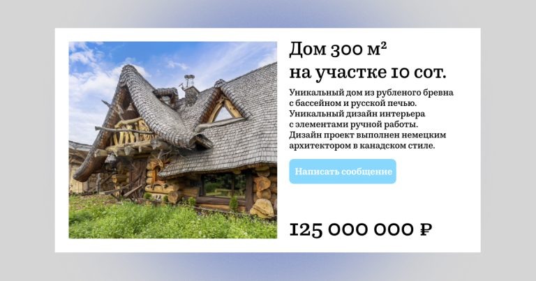 Избушке на курьих ножках версии «бизнес-класс» ищут нового хозяина в подмосковной Истре. Такой лот размещен на популярной онлайн-площадке по поиску объявлений. Дом располагается в элитном поселке на 24-м километре Новорижского шоссе. Объект оценили в 125 млн рублей. Про соседа Лешего и летающую ступу в объявлении не уточнили. За эту сумму покупателю предлагается деревянный рубленый двухэтажный дом в 300 кв. м из северной сосны. Его построили в 2014 году. Как указано в объявлении, при строительстве особняка были использованы экологичные материалы, а элементы отделки и декора выполнены вручную. Также будущий хозяин получит в распоряжение полностью оборудованный для жизни дом с кабинетом и детским блоком. Вся мебель в доме сделала из дерева: шкафы, столы, стулья в виде грибов. В интерьере использованы пни, коряги, бревна, долбленая утварь. Там также можно увидеть декоративные металлические цепи, массивные кованые элементы и стилизованные светильники. При этом в доме все оснащено современн