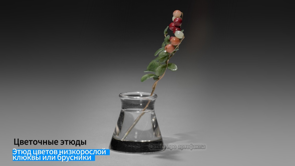Чтобы запечатлеть мимолётный момент природы, Фаберже не использовал красок. Он владел тайной, ну ладно, ладно, не тайной, а технологией, как передать жизнь камнем. Чтобы воспроизвести переход клюквы или брусники от незрелости к спелости, он варьировал минералы: молочно-белый халцедон становился нежной, ещё не созревшей ягодой, а глубокий красноватый агат — плодом, впитавшим всё солнце.