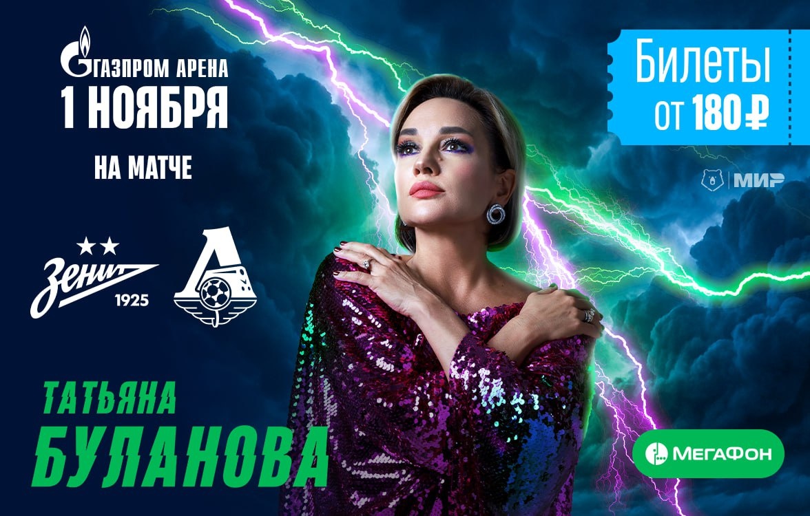 ⚡ «Зенит» против «Локомотива» + концерт Татьяны Булановой! 💙⚽️🎤 Скидка на билеты — 70