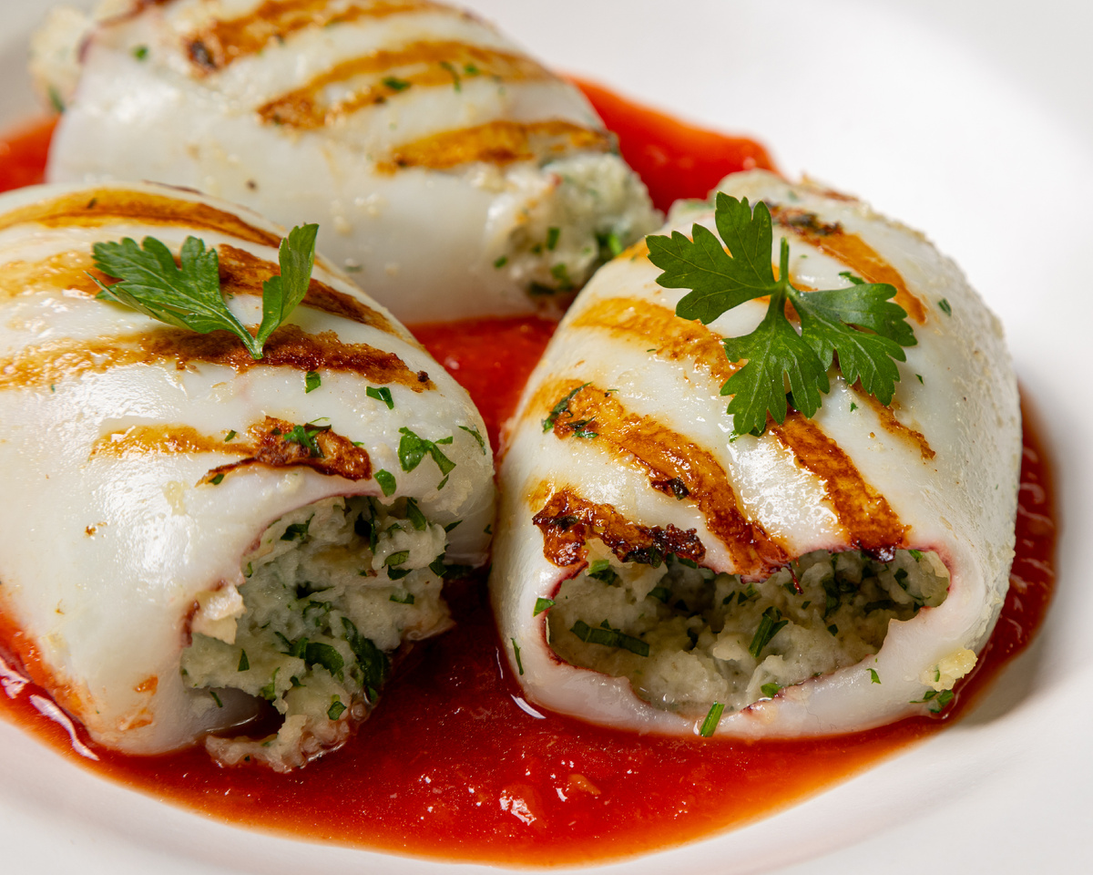 Фаршированные кальмары в томатном соусе в аэрогриле. Рецепт