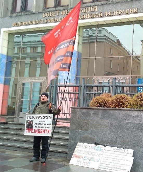 Ежедневные пикеты НОД у Совета Федерации РФ «Родина в опасности! Дадим чрезвычайные полномочия Президенту!» «Поддерживаем Нарышкина и Лугового! Более 80 тысячам шпионов не место во власти и СМИ!» Три пункта для победы: Межконтинентальные.рф ПолномочияПутину.рф Горбсуд.рф Фото: Москва, Совет Федерации РФ, 28.10.2025