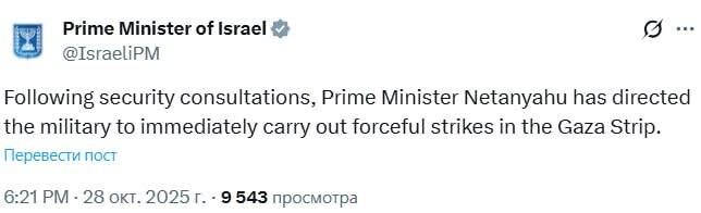 ❗️Netanyaxu G’azo sektoriga zudlik bilan kuchli zarba berishga chaqirdi Bu Netanyaxuning HAMAS o‘t ochishni to‘xtatish to‘g‘risidagi kelishuvni “aniq buzganini” da’vo qilgach e’lon qilindi. O‘z navbatida, G‘azo hukumatining media idorasi Isroilni 10-oktyabrdan kuchga kirgan o‘t ochishni to‘xtatish rejimini 125 marta buzganlikda, jumladan, 94 nafar falastinlikni o‘ldirganlikda aybladi. @daryolive