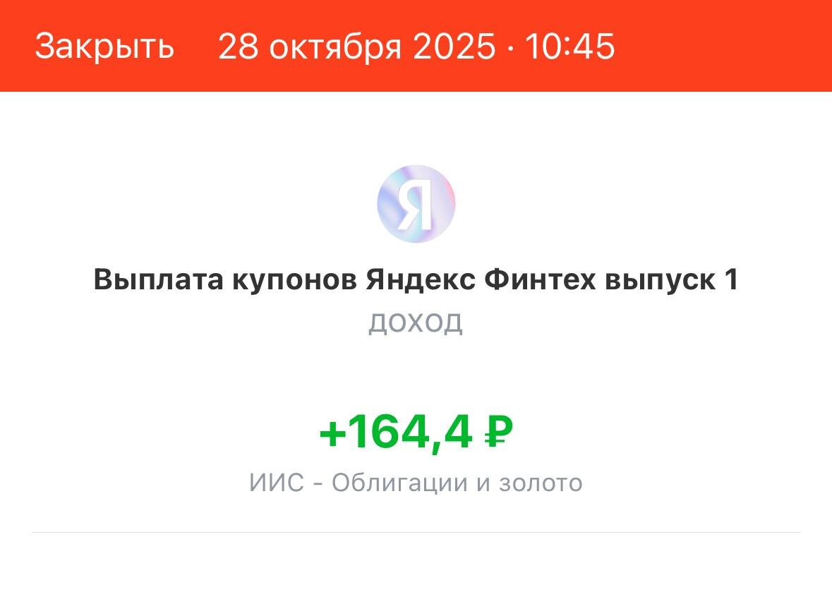 $IMOEXF провалился до 2435 и отскочил обратно до 2500, не зря получается вчера купил #акции а сегодня упустил это очередное дно нашего рынка Жаль, что #офз не взял ещё, а то сегодня цены поднялись Смотрим куда ветер подует, а пока пришли купоны $RU000A10AAQ4 Доля #облигации по компании меньше планируемых 10% от #иис поэтому докупаю, но другой выпуск $RU000A10C3F4 , там где цена ниже номинала #прояви_себя_в_пульсе
