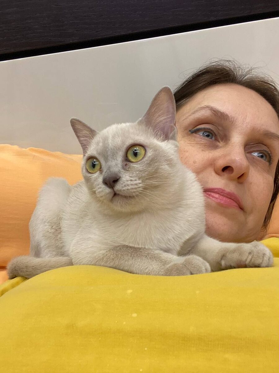 Легла посмотреть зомбоящик. Но чует мое сердце, что это на долго. Ну почему, у меня телевизор древний???? Как переключить это фигню? Пятнышко (раньше мимимишка) устроилась надолго Хелп!