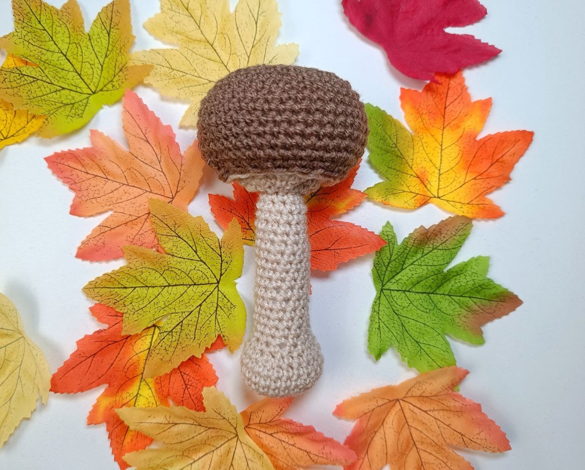 Привет 🍂 Предлагаю сегодня связать замечательный грибочке🍄🟫 Высота 15 см. Для вязания потребуется: Пряжа двух цветов, у меня Пехорка Детская новинка, 200 м/50 г. Крючок 3 мм Наполнитель Игла. Вяжем Шляпку: В КА (кольцо Амигуруми) 6 СБН (столбик без накида) 12 СБН (1 СБН + прибавка(пр))× 6 раз (18) (2 СБН + пр)× 6 раз (24) (3 СБН + пр)× 6 раз (30) (4 СБН + пр)× 6 раз (36) (5 СБН + пр)× 6 раз (42) 8-14 р - 42 СБН (42) (5 СБН + убавка (уб))× 6 раз (36) Оставляем нить для пришивания. Нижняя часть шляпки: Берём нить светлого цвета: Вяжем с 1 по 6 ряд. В результате получается круг из 36 петель. Соединяем две детали иглой и набиваем шляпку. Вяжем ножку: Вяжем с 1 по 4 ряд. Получаем 24 петли. 5 - 7 ряд вяжем по 24 петли. (2 СБН + уб)× 6 раз (18) (1 СБН + уб)× 6 раз (12) 12 СБН за переднюю стенку петли. по 28 ряд вяжем по 12 петель. По мере вязания разбиваем деталь. Пришиваем ножку к шляпке. Можно сделать стяжку на внутренней стороне шляпки. Как вам такой грибок? Ещё вязать грибочк