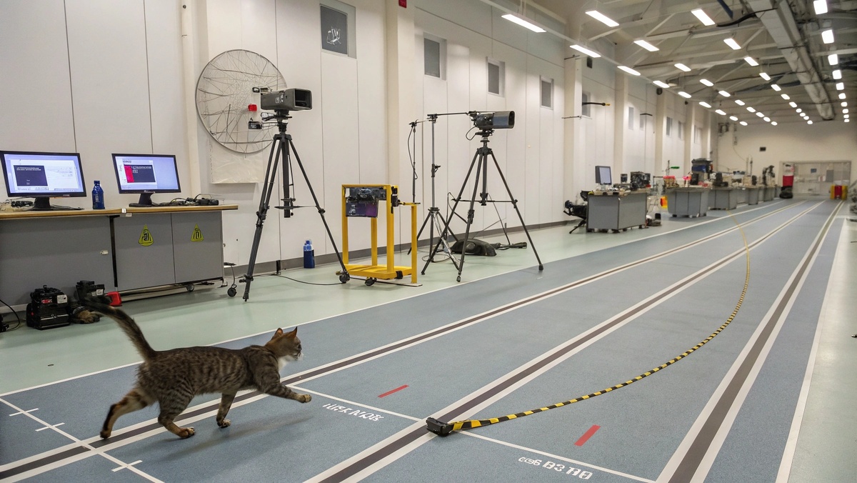 Методика была простой: кошек выпускали в закрытом пространстве длиной тридцать метров. На финише ставили миску с едой или игрушку — что больше мотивировало конкретную кошку. Засекали время с помощью высокоскоростных камер и лазерных датчиков. Повторяли эксперимент несколько раз с каждой кошкой, чтобы зафиксировать пиковую скорость.