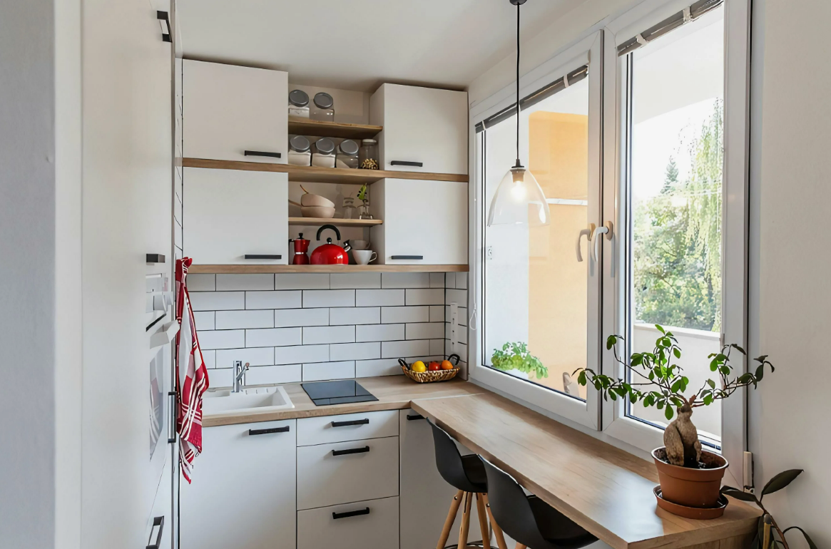 Даже на небольшой кухне можно готовить удобно, если освободить один рабочий метр и поднять хранение вверх. Главная цель — убрать частые предметы с поверхности и сократить лишние движения. Основа — пустая столешница Оставьте на виду только чайник и разделочную доску. Всё остальное должно иметь место в шкафах или на рейлингах. Чистая полоса столешницы ускоряет готовку и уборку. Вертикальные решения Рейлинги под навесными шкафами — для лопаток, полотенец, половника. Магнитная планка — для ножей, она безопаснее подставки и освобождает угол. Узкая полка у фартука — для соли, масла и перца: они под рукой, но не мешают. Внутренние делители В ящиках установите контейнеры под специи, крышки и мелкую утварь. Крышки вертикально — в держателях, противни — в разделителях. Так предметы не «захватывают» весь ящик, а находятся за секунды. Пересмотр техники Если прибор используется реже раза в месяц, он не должен жить на столешнице. Храните редко используемое выше уровня глаз, часто используемое — межд