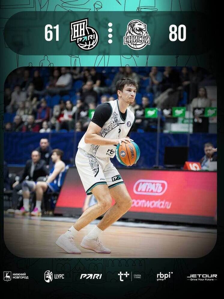 В домашнем матче Единой Лиги ВТБ баскетбольный клуб «Пари НН» уступил красноярскому «Енисею» со счетом 61:80. До этой встречи «Енисей» потерпел поражение во всех шести стартовых играх сезона. Наибольшее количество очков в команде «Пари НН» набрал Кирилл Попов, его результат – 13 очков. Примечательно, что самым результативным игроком в составе «Енисея» стал Артём Антипов, ранее выступавший за нижегородскую команду. Он принес своей команде 16 очков. Следующая игра «Пари НН» состоится 2 ноября на домашней арене против казанского УНИКСа.