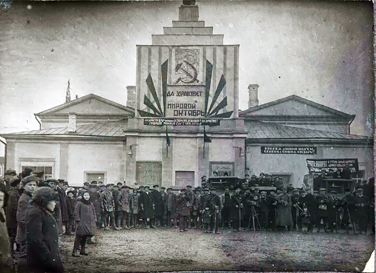 23 мая 1937 года в кинотеатре им. Горького состоялся не просто кинопоказ, а рекламный кинопоказ. На экране продемонстрировали короткометражку, выпущенную вологодской фото-артелью. Это была их первая работа и она рассказывала о продукции артельсоюза, который производил в Вологде детские игрушки. В такой непривычной форме в артельсоюзе решили прорекламировать свою продукцию. Выросли или нет продажи после такой рекламы - неизвестно. На снимке конца 1920-х или начала 1930-х годов кинотеатр им. Горького в здании бывшего Спасо-Всеградского собора на площади Революции.
