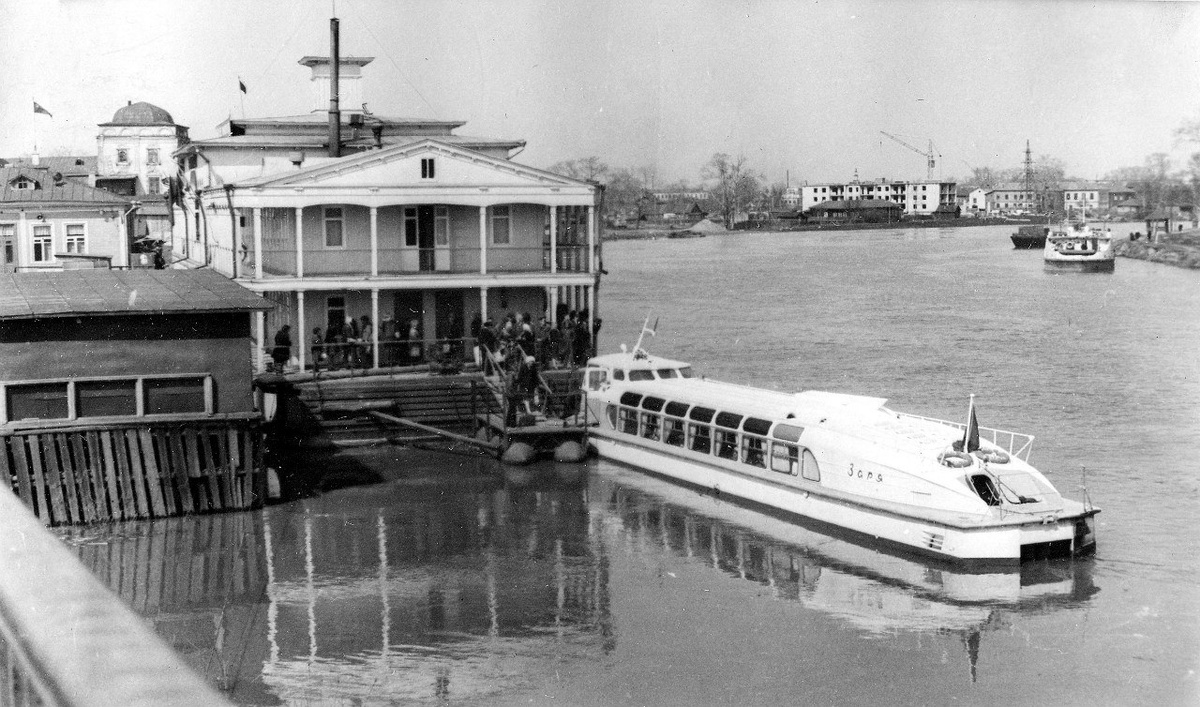 На снимке 1973 года речной вокзал. Пассажиры неспеша и в порядке очереди идут на посадку на «Зарю».