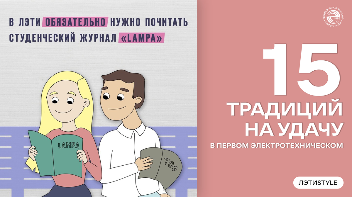 Студенческий журнал LAMPA появился в Первом электротехническом в декабре 2017 года и сразу завоевал сердца лэтишников. Из материалов журнала читатели узнавали молодежные новости университета, за печатными экземплярами «охотились», передавали их из рук в руки и использовали в своих эстетичных фотографиях для соцсетей. Авторы проекта – студенты кафедры Связи с общественностью – делились актуальными в мировом и вузовском пространстве событиями и тенденциями, делали модные обзоры и рассказывали о популярных хобби. Именно с этого проекта началась история студенческого Медиацентра СПбГЭТУ «ЛЭТИ» ETU Media – объединения, в котором сегодня студенты развивают навыки фотографии, видеосъёмки, монтажа и дизайна, а тексты остаются одним из сильных и приоритетных направлений команды.