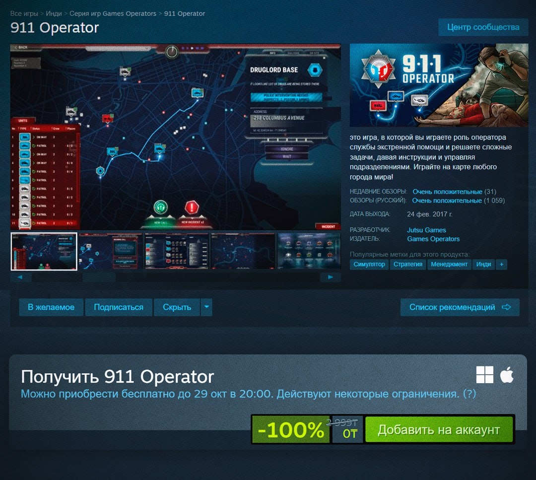 Привет, друзья! Сегодня в мире игр произошло интересное событие — в Steam бесплатно раздают симулятор экстренных служб 911 Operator. В этой игре вам предстоит примерить на себя роль оператора и решать сложные задачи, давая инструкции и управляя различными подразделениями. Акция продлится до 29 октября, так что у вас есть время, чтобы забрать свою копию. Если вам нравятся симуляторы и игры, где нужно быстро принимать решения, то 911 Operator может стать отличным дополнением к вашей коллекции. Интересно, сколько игроков воспользуются возможностью и добавят эту игру в свой аккаунт? Не забудьте подписаться на канал «The Collective», чтобы быть в курсе всех интересных новостей из мира технологий и игр! Что вы думаете по этому поводу? Пишите в комментариях! Подписывайтесь на канал ‘The Collective’ – здесь только самое интересное!