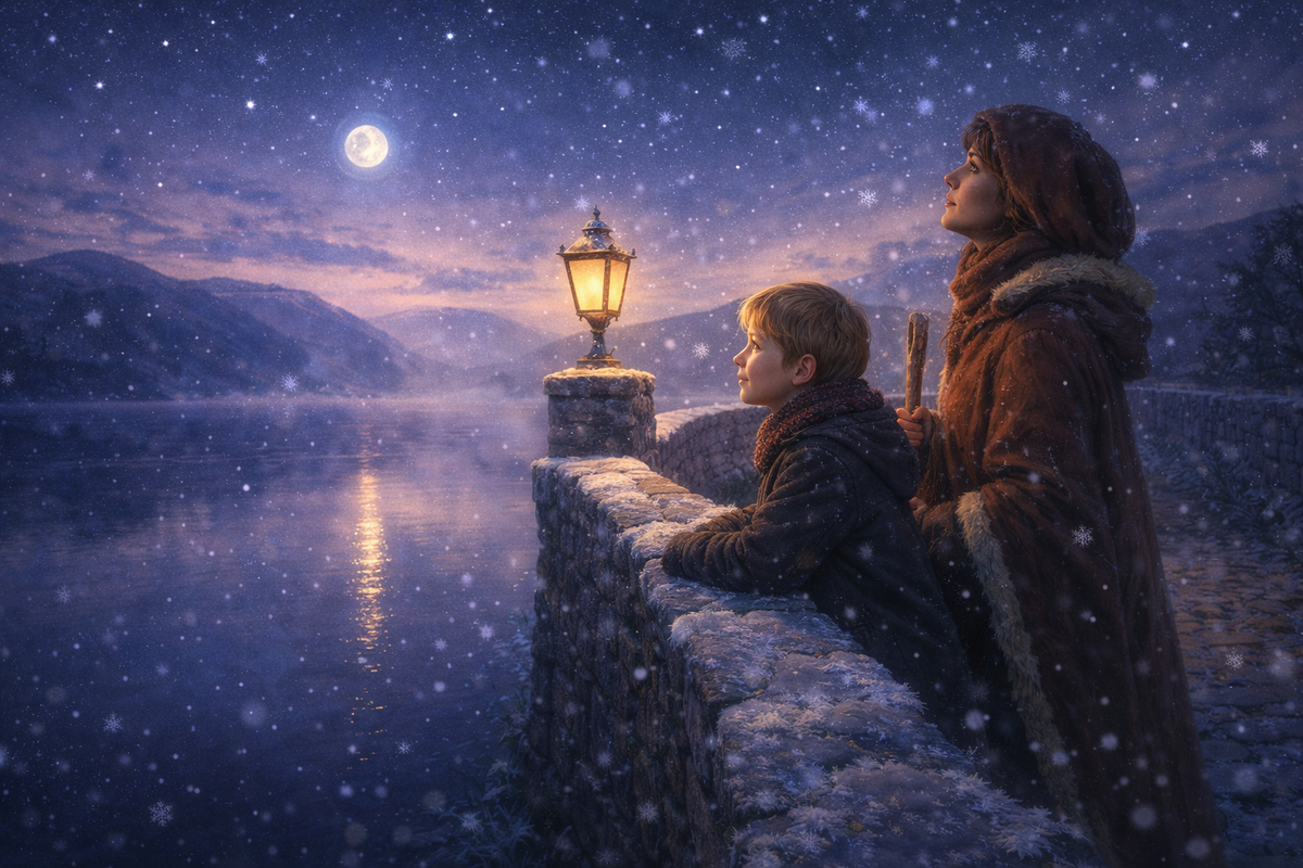 ΠΠ°Π΄ Π¨ΠΎΡΠ»Π°Π½Π΄ΠΈΠ΅ΠΉ ΡΡΠΎΡΠ»Π° ΠΌΠΎΡΠΎΠ·Π½Π°Ρ Π½ΠΎΡΡ. ΠΡΠ½Π° Π²ΠΈΡΠ΅Π»Π° Π½Π°Π΄ Ρ ΠΎΠ»ΠΌΠ°ΠΌΠΈ, ΠΊΠ°ΠΊ ΡΠ΅ΡΠ΅Π±ΡΡΠ½Π°Ρ ΠΌΠΎΠ½Π΅ΡΠ°, ΠΊΠ°ΠΆΠ΄Π°Ρ Π·Π²ΡΠ·Π΄ΠΎΡΠΊΠ° ΡΡΠΊΠΎ ΡΠ²Π΅ΡΠΈΠ»Π° Π½Π° ΡΠ΅ΠΌΠ½ΠΎΠΌ ΠΏΠΎΠΊΡΡΠ²Π°Π»Π΅ Π½Π΅Π±Π°. ΠΠ° ΠΎΠ·Π΅ΡΠ΅ ΠΠΎΡ -ΠΠ΅ΡΡ Π±Π»Π΅ΡΡΠ΅Π» Π»ΡΠ΄, Π° Ρ ΡΠ°ΠΌΠΎΠ³ΠΎ ΠΊΡΠ°Ρ ΡΡΠ°ΡΠΎΠ³ΠΎ ΠΌΠΎΡΡΠ° ΡΡΠΎΡΠ» ΠΠ»Π°ΡΡΠΈΡ β Π·Π°Π΄ΡΠΌΡΠΈΠ²ΡΠΉ, Ρ ΠΏΠΎΡΠΎΡ ΠΎΠΌ Π² ΡΡΠΊΠ΅.