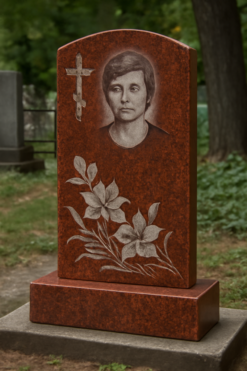 Красный гранит — материал, наделённый особым благородством. Его глубокие, насыщенные оттенки от тёплого терракотового до насыщенного бордового создают неповторимый визуальный эффект. Такая палитра позволяет передать всю гамму эмоций — от светлой грусти до торжественного почтения. При этом природная прочность гранита гарантирует, что памятник сохранит свой первозданный облик на протяжении многих десятилетий, стойко перенося капризы погоды и неумолимое течение времени.