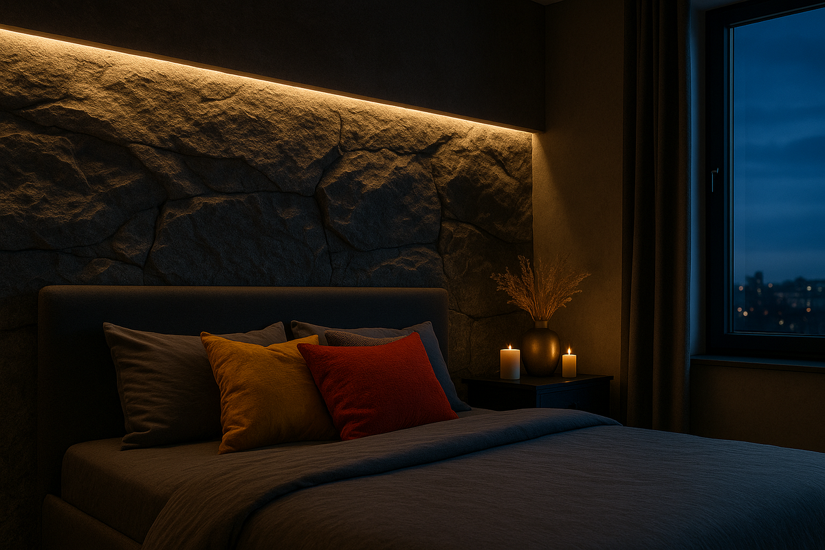 Хорошая подсветка не заметна сама по себе, но без неё камень теряет смысл. Правильно интегрированный свет превращает обычную стену в композицию, где свет и тень работают как единая система.