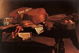 Э. Баскенис. «Музыкальные инструменты». Барочные инструменты: колёсная лира, виола, лютня, барочная скрипка и барочная гитара