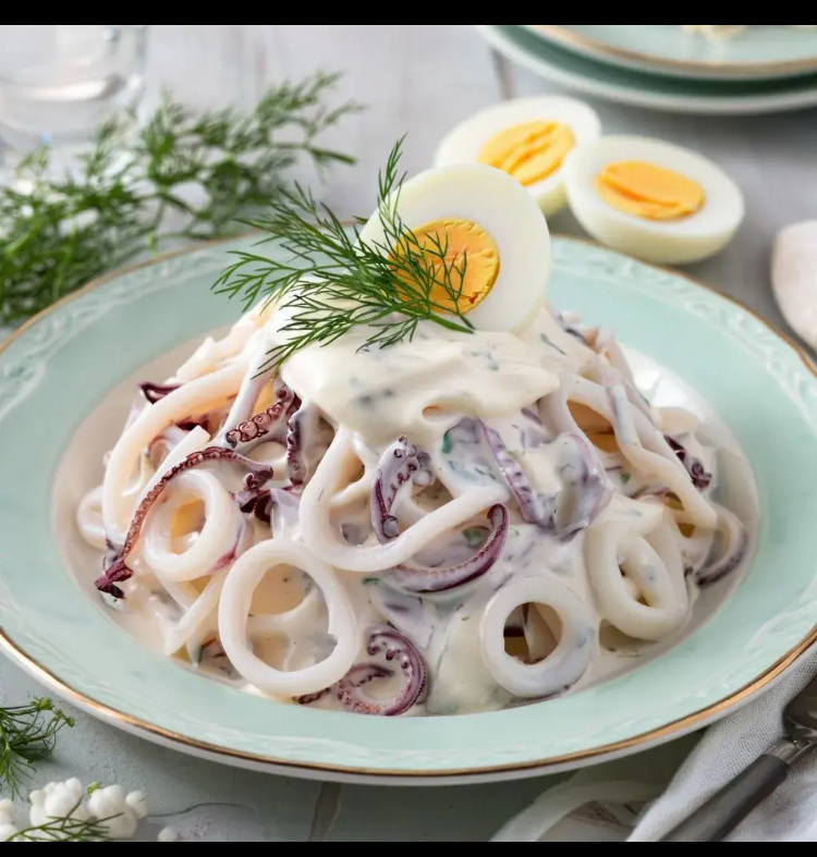 Салаты из морепродуктов отличаются изысканным вкусом и пользой для здоровья. Одним из любимых ингредиентов является кальмар, который легко готовится и сочетается практически со всеми овощами. Сегодня мы поделимся простым рецептом вкуснейшего салата из кальмаров, идеально подходящего как для праздничного стола, так и для повседневного обеда. Ингредиенты: Кальмары свежие очищенные — 300 г Огурцы свежие — 2 шт. Яйца варёные — 3 шт. Морковь отваренная — 1 шт. Зелень петрушки и укропа — небольшой пучок Майонез домашний или магазинный — по вкусу Соль и перец черный молотый — по вкусу Инструкция приготовления: Подготовка кальмаров: Очищенных кальмаров опустить в кипящую подсоленную воду буквально на одну минуту, чтобы мясо осталось нежным и упругим. Затем откинуть на дуршлаг и остудить. Нарезка овощей и яиц: Свежие огурцы нарезать тонкой соломкой или кубиками среднего размера. Вареные яйца очистить от скорлупы и мелко порубить ножом. Отварённую морковь также измельчить небольши