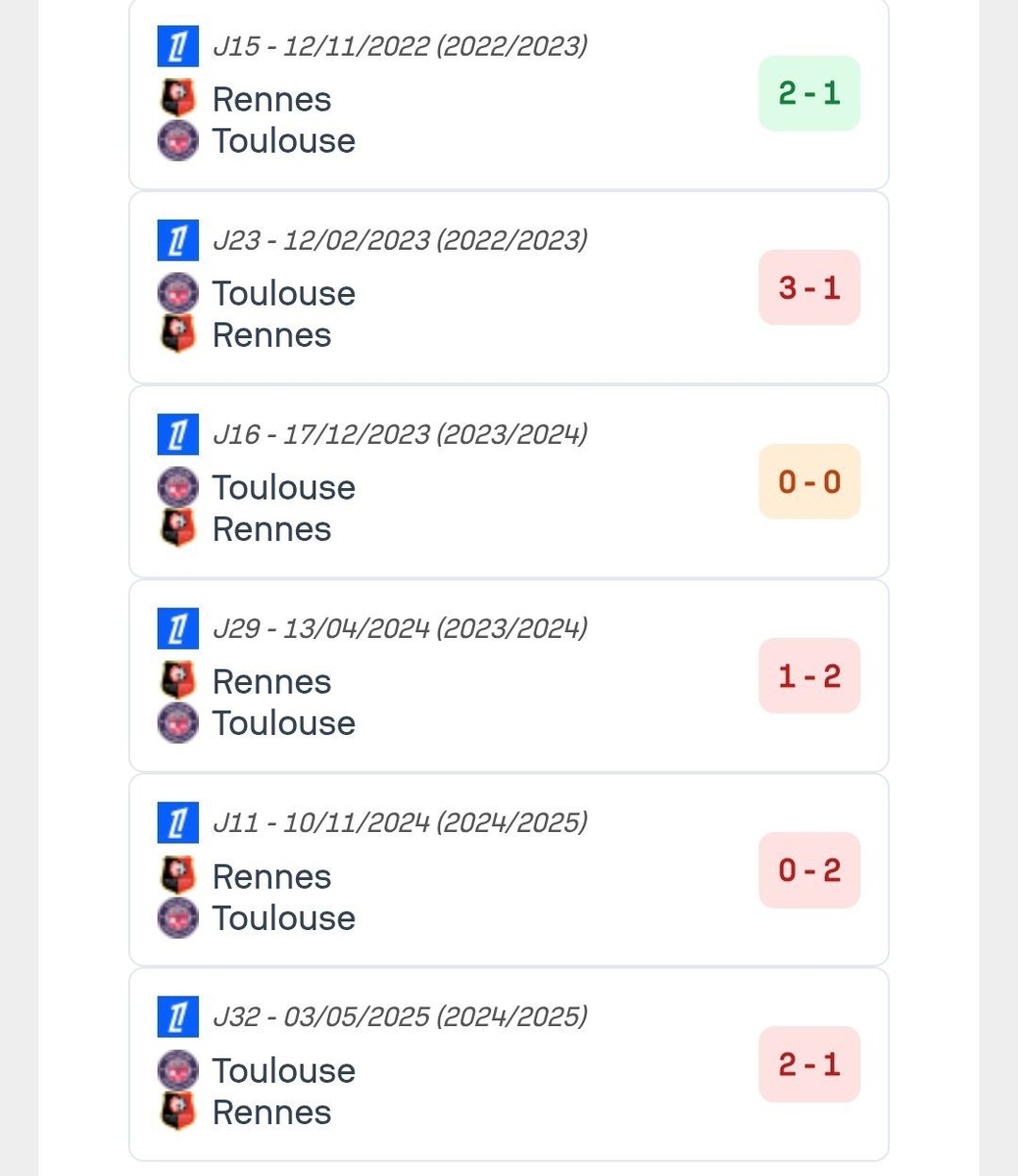 Последние матчи с Тулузой