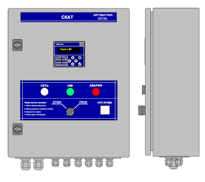 СКАТ-210 — это промышленный контроллер, предназначенный для управления блочными горелками на газовом топливе, установленными на водогрейных котлах.