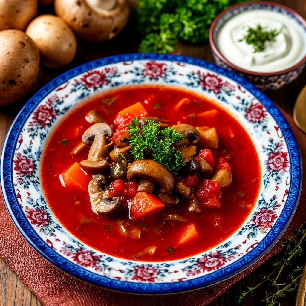 Густой, наваристый борщ с глубоким вкусом, где гармонично сочетаются лесные грибы, свекла и букет перцев. Идеален для прохладного дня — согревает, насыщает и радует богатым ароматом. Время приготовления: 2 часа