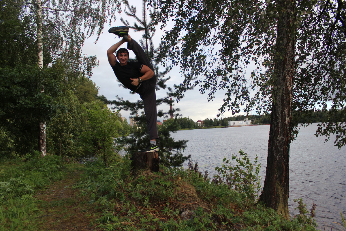 Динамические махи ногами (по 10-15 раз на каждую ногу):