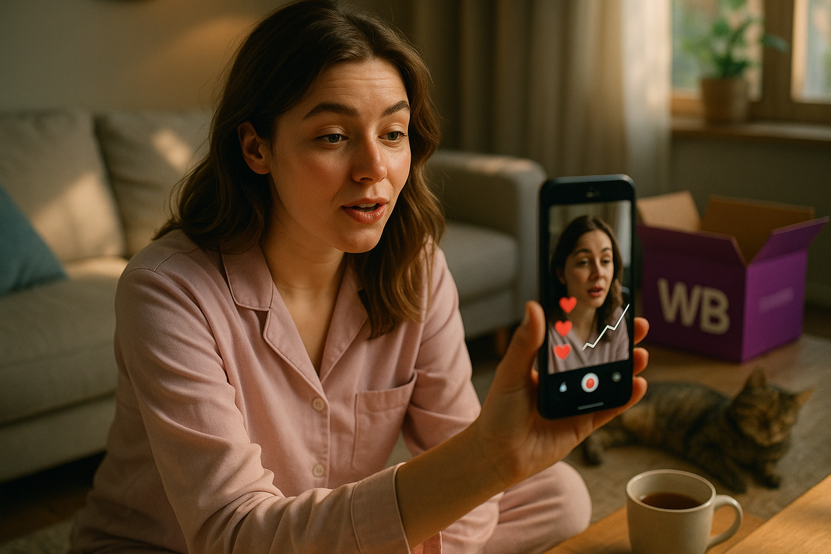Когда вы ведёте продажи на Wildberries, вы хорошо знаете: скидки увеличивают цену, реклама съедает маржу, и часто — карточка просто не «раскручивается». А дело не столько в товаре, сколько в том, как его видят покупатели. Представьте: одна покупательница снимает 23 секунды видео — распаковывает костюм, надевает, говорит «мягкий, тёплый, как подарок себе». Всё. Через день CTR растёт с 0,9 % до 2,6 %, через несколько дней появляются продажи, и карточка выходит в топ-50 по женскому домашнему костюму.