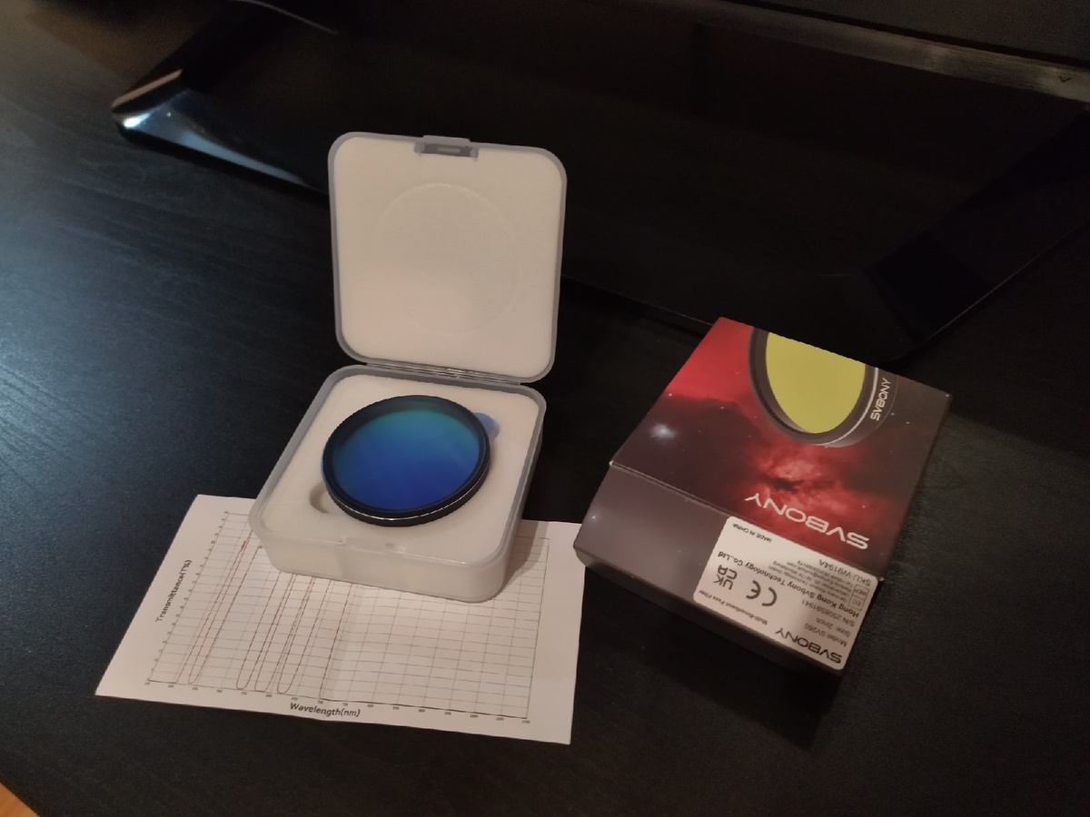 И снова привет! Ко мне вчера приехал фильтр от засветки и EAA Svbony SV260, судя по кривой пропускания - аналог Optolong LPro. Это предстоит ещё проверить, но по сути, это самый универсальный фильтр для повышения контраста всех объектов для цветной камеры в условиях средней засветки. Важно, что фильтр не пропускает NIR и может использоваться без дополнительного фильтра UV/IR Cut, что особенно критично для линзовых астрографов. Вообще, это третья модель в линейке фильтров для OSC (SV220, SV240, SV260) - по возрастанию ширины пропускания, начиная с 7нм. Две первые модели я уже протестировал и активно использую вместе с коллегами. Осталось протестировать третью, будем ждать астропогоды. Насколько мне известно, этот фильтр выпускается размером только 2". Думается, имеет смысл выпускать его и размером 1.25" (есть такой размер LPro), который будет дешевле, чтобы его могли купить многочисленные владельцы камер с чипами 1" и меньше, например, SV705C на популярном чипе для EAA IMX585 (вендору н