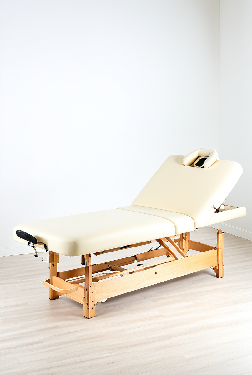 Материал каркаса определяет вес и долговечность. Деревянный каркас (бук) — это классика, эстетика и максимальная устойчивость для стационарного массажного кабинета. Он создает атмосферу уюта, но тяжелее и чувствителен к влаге. Алюминиевый каркас — это легкость и мобильность, ключевое для переносного стола. Он прочен, не боится коррозии и является лучшим выбором для мастеров, работающих на выезде.
