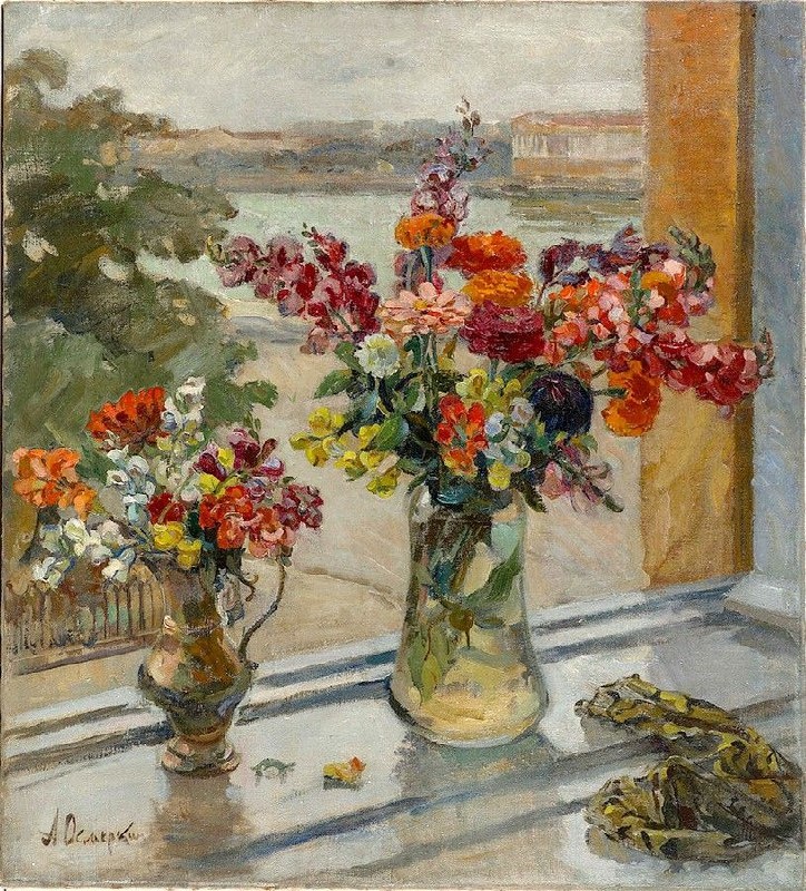 🎨 Александр Осмёркин — художник «Бубнового валета» и один из ярчайших мастеров русского авангарда Родился в 1892 году в Елисаветграде, учился у таких мастеров, как Николай Рерих, Николай Пимоненко и Илья Машков, а это уже многое говорит о его художественном формировании. В 1913 году он вошёл в легендарное объединение «Бубновый валет» — общество художников, которое перевернуло представление о русской живописи начала XX века. Их искусство отличали смелость цвета, мощная форма и влияние французского модернизма — Сезанна, фовистов, кубистов. Осмёркин участвовал в выставках с 1913 года, а уже после революции стал профессором и одним из самых уважаемых педагогов ВХУТЕМАСа и Ленинградского института живописи, скульптуры и архитектуры имени Репина. Он не только писал картины, но и создавал декорации для театра, оформляя спектакли в Камерном театре, БДТ и Русском Большом драматическом театре в годы войны. Главные темы его творчества — натюрморты, пейзажи и портреты, где чувствуется строгая