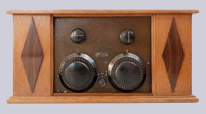 Ламповый радиоприёмник «Bekius Populair». Этот радиоприёмник производился с 1928 года компанией «Бекиус, Техн. Бур. В.» из Зволле, Голландия. Корпус изготовлен из дуба, с двумя ромбовидными вставками из коромандельского дерева и эбонитовой передней панелью. Слева находится реостат, управляющий высокочастотной лампой, а справа — ручка для регулирования регенерации. Две большие ручки служат для первичной и вторичной настройки, обе с плавной регулировкой. Между ними расположен переключатель диапазона волн. Справа находится секция блока питания приёмника. В нём должен был использоваться выпрямитель Philips 451, работающий на парах ртути, но в этой модели его нет. Вместо него установлена правая лампа 373, выполняющая функцию выпрямителя. Также можно заметить трансформатор накала Ferrix. За картонной крышкой спрятан вариометр Bekius для индуктивной связи. Радиоприёмник собран на лампах: D143, F215, C142 и 373. Он питается от сети переменного тока 125 В. Размеры приёмника составляют 485 ×