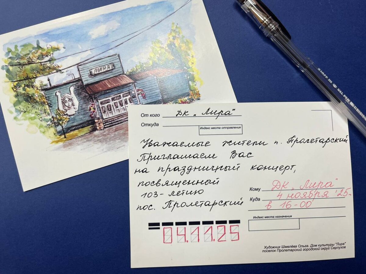🎉 103 года поселку Пролетарский 4 ноября в Доме культуры «Лира» состоится масштабный праздник, посвящённый Дню рождения поселка. Программа мероприятия: - С 15:00 — экскурсии по выставкам в фойе ДК. Выставка «Достояние поселка» познакомит с достопримечательностями и красотой родных пейзажей, работы в технике «Скетчинг» покажут исторические виды поселка. Будут представлены картины местных художников Елены Мещеряковой, Василия Ярославцева и Ольги Шмелевой. - Фотозона «Дом родной» — отличное место для фотосессий! - 16:00 — торжественная часть с поздравлениями и награждениями активных жителей. - Концерт творческих коллективов ДК «Лира» и приглашённых артистов — ансамбль «Казачья песня» (руководитель Заслуженный работник культуры РФ Владимир Гусятников). - В завершение — яркое световое шоу от коллектива «Феникс», создающее праздничное настроение и яркие эмоции! 📍 Ждем вас по адресу: Городской округ Серпухов, посёлок Пролетарский, ул. 40 лет Октября, д. 21