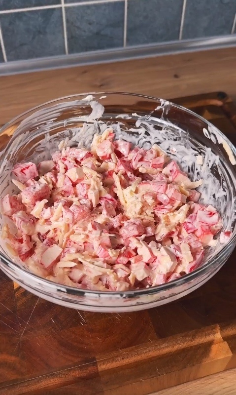 Для этого салата не нужно ничего отваривать! Салат получается нежным и очень вкусным! Готовится очень легко и быстро. Для этого нужно: - 200 г крабовых палочек - 3 средних помидора - 1 сладкий перец - 3 зубчика чеснока - 100 г сыра - 3 ст.л. майонеза - Соль и черный перец по вкусу