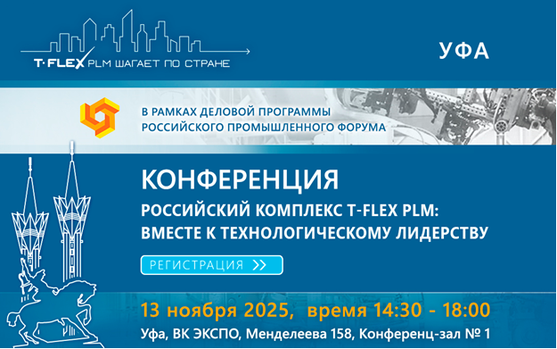 Место проведения: Уфа, ВК ЭКСПО, Менделеева 158, Конференц-зал №1 Если перед Вами стоят вызовы перехода на отечественные PLM‑системы, создания единой информационной модели изделия, использования инновационных инструментов для эффективного управления процессами разработки и производства изделий, повышения качества продукции и сокращения сроков выпуска, то это мероприятие для Вас! Темы конференции: · Российский программный комплекс T-FLEX PLM на базе единой PLM: обзор комплекса и новые возможности продуктов комплекса T-FLEX PLM. · Стимулы и темпы перехода на отечественные PLM решения в промышленности: какие вызовы стоят перед промышленными предприятиями и почему важен осознанный переход на отечественные технологии. · Переходим на отечественное инженерное ПО: с чего начать? · Опыт использования программного комплекса T-FLEX PLM у заказчиков. · Академические инициативы, поддержка инженерны