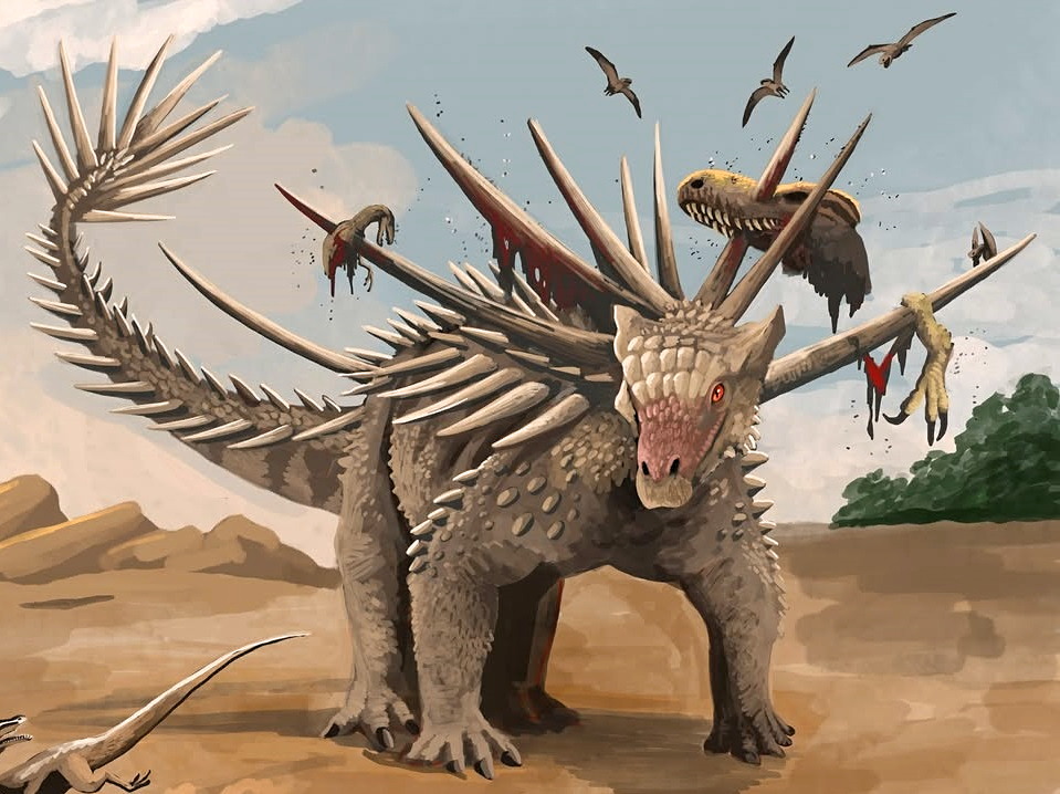 В 2021 году в Африке впервые нашли остатки представителя анкилозавров. Образец отметился сразу двумя вещами: первая - это возраст в 165 млн лет (средняя юра), который делает животное древнейшим из известных панцирных динозавров; вторая - это то, что находка представляла собой фрагменты ребра, прямо из которого выступали шипы - такое сочетание ранее не видели ни у вымерших, ни у современных видов. Назвали уникума Spicomellus, где "spica" означает "шип", а "mellum" — "воротник/ошейник". Два года спустя местный фермер нашёл несколько костей и обратился к палеонтологам, которые признали в них Спикомеллуса и провели дополнительные раскопки в том районе. Помимо новых образцов ребёр, также усеянных шипами, учёные обнаружили остеодермы (костные пластины с туловища); части черепа; тазовые кости, которые имели свои шипы; хвостовые и шейные позвонки; костные пластины, образующие воротник вокруг шеи. Из этого воротника исходили рекордно длинные для тела шипы - один из них достигает 87 см, но надо