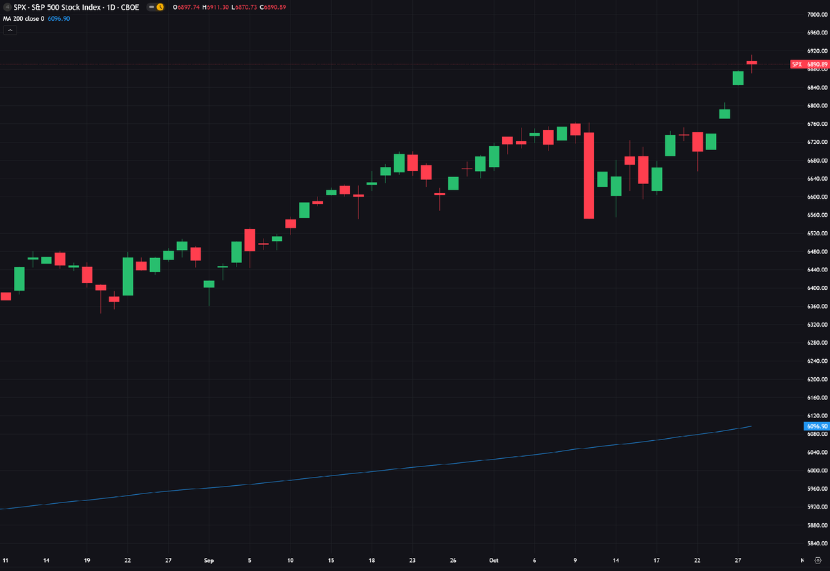 Вчера S&P 500 обновил исторический максимум, и впервые индекс ненадолго превысил отметку 6900. За последние 8 торговых сессий рынок 7 раз закрывался с повышением.