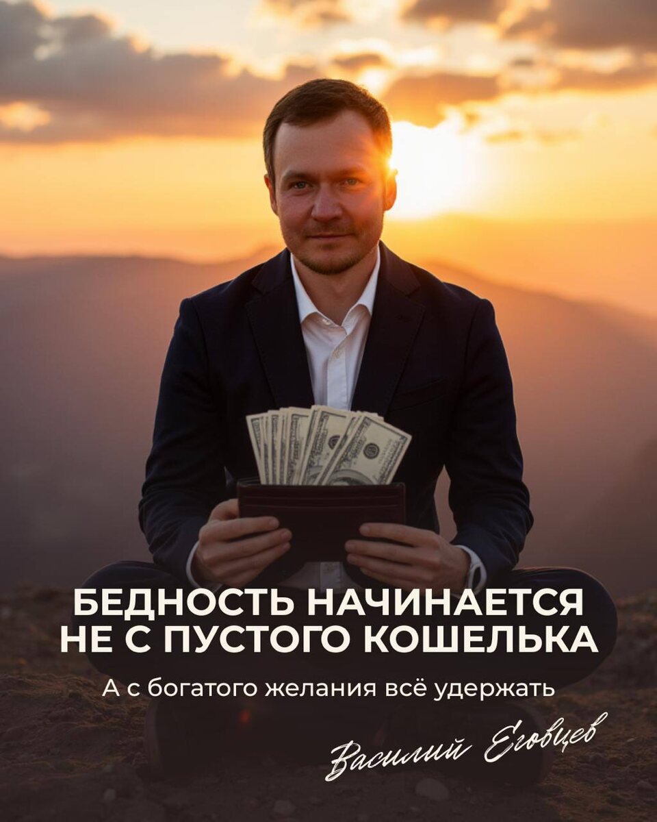 Бедность начинается не с пустого кошелька, а с богатого желания всё удержать. ——— Люди часто путают достаток с контролем. Им кажется: если держать крепче — сохранится больше. Но деньги, связи, возможности ведут себя как вода — чем сильнее сжимаешь пальцы, тем меньше остаётся. ——— Желание удержать — это не про бережливость. Это про страх. Страх, что не придёт новое. Что потеряешь место, статус, уважение. И тогда человек перестаёт двигаться — он живёт не ради роста, а ради удержания старого. ——— Так рождается бедность с полным кошельком: когда вокруг — ресурсы, а внутри — голод. Когда деньги есть, но свободы нет. Когда инвестор перестаёт рисковать, а руководитель — делегировать. ——— Истинное богатство — в умении отпускать. Продал — не жалей. Отпустил — освободи место под большее. Иногда капитал — это не то, что ты удержал, а то, от чего смог отказаться вовремя. ——— 📌 Не бойся потери — бойся застоя. Потеря всегда ведёт к движению, а застой — к обесцениванию. ⸻ Василий Еговцев