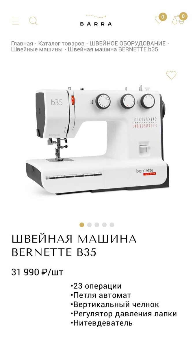 Поздравляем с прекрасным приобретением и с днём рождения 🥳 С этой покупкой связана одна очень интересная история, поделюсь в следующем посте 🥰 Швейная машина Bernette b35 - вот такой замечательный подарок выбрала для себя наша клиентка ❤️ Функциональная и в то же время простая модель, оснащенная вертикальным качающемся челноком и набором из 23-и швейных операций. В функционал модели входит: автоматическая петля, трикотажные оверлочные и декоративные строчки. Регулировки модели позволяют менять ширину строчки 0-5 мм, и длину стежка 0-4 мм. В комплекте идут 5 прижимных лапки, с помощью которых можно расширить функционал данной модели, 4 шпули, набор игл и вспарыватель. 🏷️ Швейная машина Bernette b35 - 31 990₽ 🎁Бесплатная доставка оборудования до дверей вашего дома; 📲 Телефон для связи +7 920 413-25-83 📱📱 📹 Видеоконсультация и тест-драйв, если вы далеко! BARRA, г. Воронеж, ул. Средне - Московская 5 📌