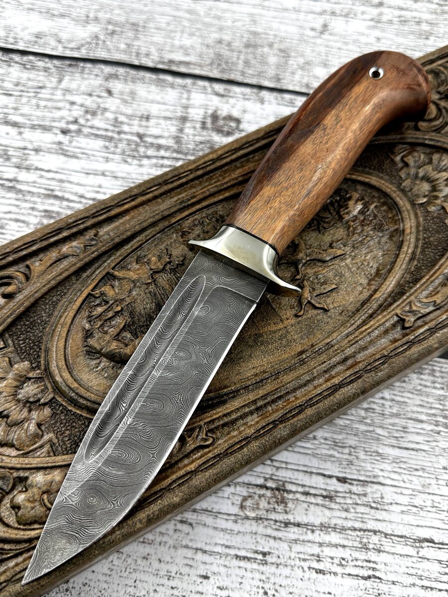 🪓 Нож «Пехотинец» из дамасской стали — прочность и стиль для настоящих ценителей! В наличии: легендарный «Пехотинец» с клинком из дамасской стали (950 слоёв!) и выразительным долом для дополнительной жёсткости. Спуски от середины клинка обеспечивают отличную стойкость к боковым нагрузкам — надёжный помощник для охоты, туризма и коллекции. Материалы: - Рукоять — мельхиор с двойным упором и вставкой из благородного палисандра: комфорт, долговечность, классика ручной работы. - Твёрдость клинка 62 HRC — идеальное сочетание остроты и износостойкости. В комплекте — ножны из натуральной кожи. *По желанию — формованные ножны (+8000 руб.).* Цена: ~10 040₽~ → 8 032₽ по акции 📩 Для заказа пишите в Telegram: [@Nazarklinokbot](https://t.me/Nazarklinokbot) или WhatsApp/Viber: [ +7 910 134-38-31](https://wa.me/79101343831) #кузница_назарова #ножи_ручнойработы #дамаск #охотничийнож #туризм #подарокмужчине #ручнаяработа #коллекция #pehotinec