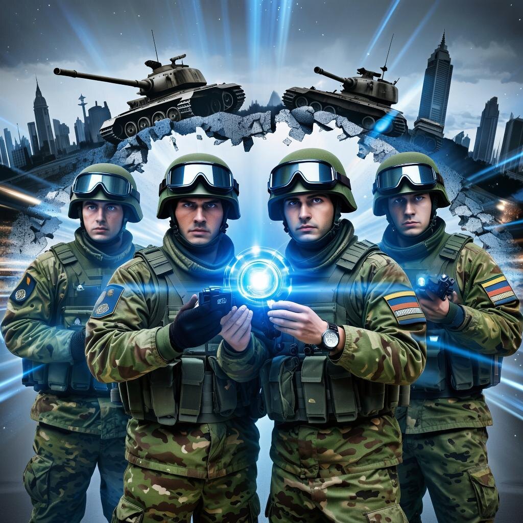 Командир нажал кнопку активации машины времени, разработанной лучшими учеными России. Яркая вспышка озарила помещение, и бойцы исчезли, оставив лишь мерцающие следы.