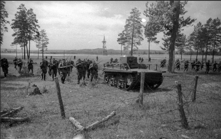 Мы столкнулись с 14-м разведбатом 14-й моторизованной дивизии противника. А если быть точнее, то с передовым отрядом, состоящим из третьего лёгкого взвода бронеавтомобильной роты и взвода мотоциклистов из стрелковой роты, этого же разведбатальона. Три грузовика с мотопехотой - это подразделение из полка, они должны были удерживать мост, пока по нему не пройдут остальные подразделения.