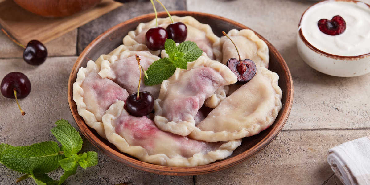 Ингредиенты → Шаги → Результат Это летнее украино-русское лакомство: сочные вареники с кисло-сладкой вишней, посыпанные сахаром или политые сметаной. Готовили их в сезон урожая — быстро, просто, без духовки. Главное — не переборщить с соком, иначе вареники лопнут. Вишню часто замораживали с косточками (они дают миндальный аромат), но для вареников косточки удаляют. Тесто: Начинка: Подача: Приготовь тесто: Приготовь начинку: Лепка и варка: Подавай: