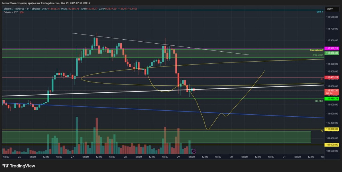 В ответ на пост #мнениепорынку 🕯🕯🕯 ⚠️Итак, коллеги, на BTC мы наблюдаем отработку сценария снижения с целью закрыть GEP. Отработка началась через повторный ретест локального блока и прямо сейчас выполнение завершено на 50%! ⚠️В результате закрытия вчерашнего дня на битке, дневной график практически уже кричит, что он направляется к уровню 110К, сюда же ожидание рынком новостей по ставке ФРС США! ⚠️Альты при этом, плюс минус показывают положительную динамику, через короткие откаты параллельно BCT, при этом, дают забирать короткие профиты 3-5% внутри дня, что мы и делаем в канале "ТТ" = присоединяйтесь!! P.s. маржинальный рынок сейчас крайне опасен, коллеги, особенно для тех, кто любит баловаться х10 и более плечами! А таких большинство в сообществе, я знаю точно, проводил исследование на этот счет! 🔼🔽 То, чем занимается ММ последние дни - неделю = это бреет маржинальщиков, в очередной раз доказывая им, что никто не даст им с х20 плечом уехать на иксы. Малейший импульс роста на