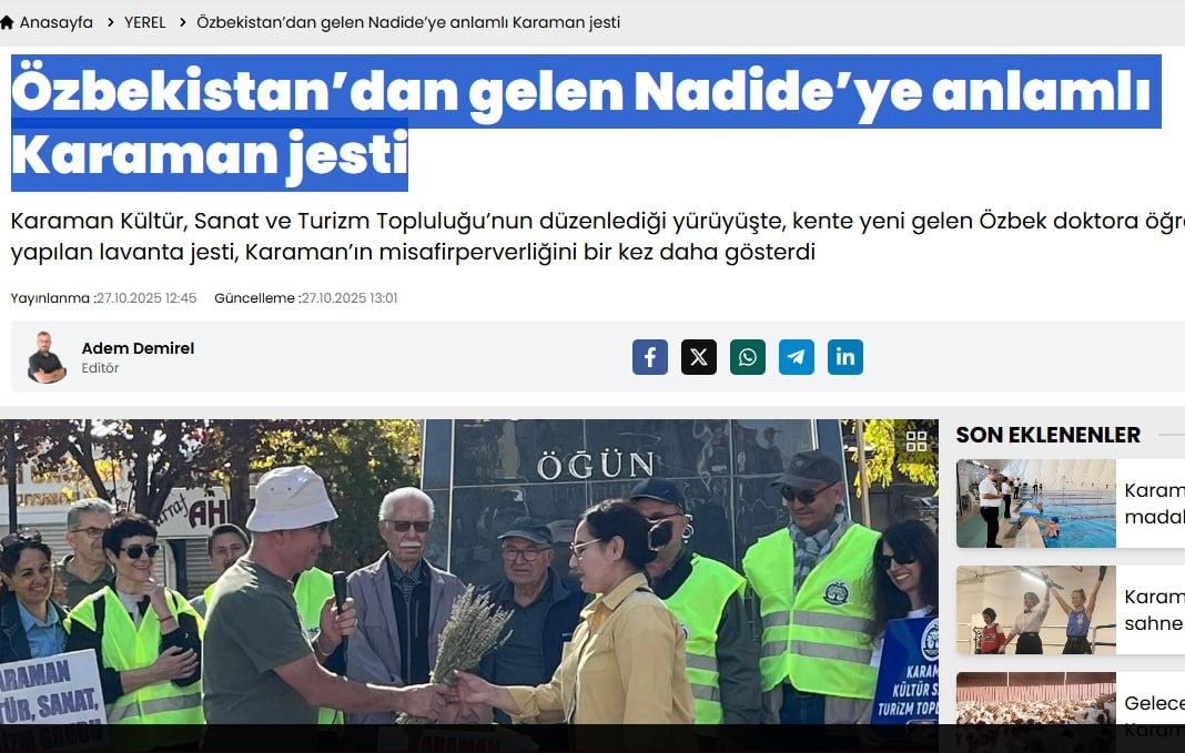 “Karaman Gündemi” сиёсий янгиликлар газетаси сайтида “Ўзбекистонлик Надирага Караманнинг мазмунли ишораси” сарлавҳали мақола чоп этилди.