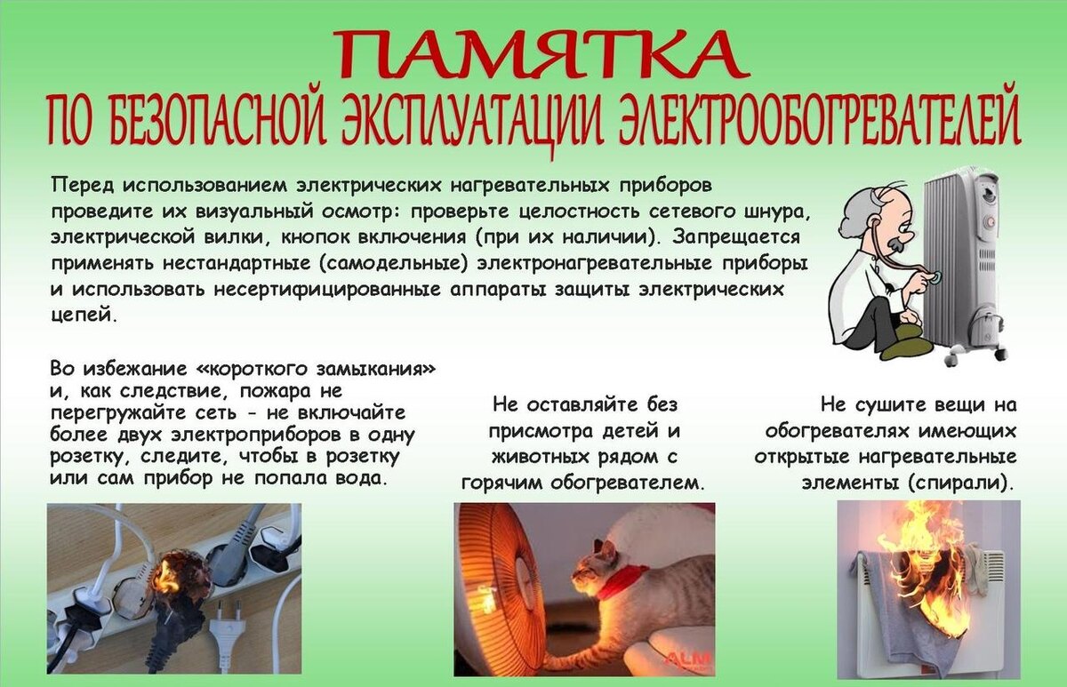 ✒️Мария Модина, инструктор по профилактике ПЧ-75 Богучанского района краевого учреждения «Противопожарная охрана Красноярского края» ✔️С наступлением холодов начинается активное использование населением электротехнических и теплогенерирующих устройств. Традиционно в данный период времени основное количество пожаров происходит по электротехническим причинам и по причинам, связанным с неправильным устройством или эксплуатацией теплогенерирующих устройств печей и дымоходов. Соблюдение правил пожарной безопасности позволит максимально обезопасить себя от риска возникновения пожара. ❗️При эксплуатации электрических приборов запрещается: - использовать приемники электрической энергии (электроприборы) в условиях, не соответствующих требованиям инструкций предприятий-изготовителей, или имеющие неисправности, а также эксплуатировать электропровода и кабели с поврежденной или потерявшей защитные свойства изоляцией; - устанавливать самодельные вставки при перегорании плавкой вставки предохра