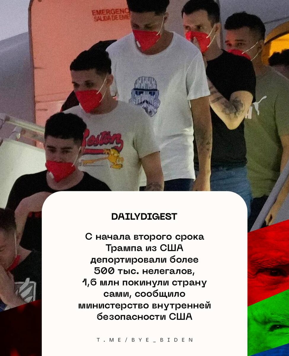 🔹С начала второго срока Трампа из США депортировали более 500 тыс. нелегалов, 1,6 млн покинули страну сами, сообщило Министерство внутренней безопасности США.