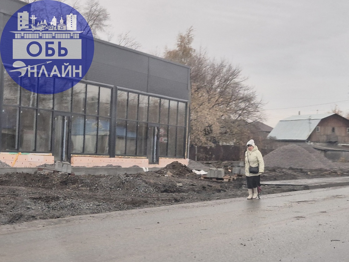 ↗ Вот так и одень белые сапожки, мало того тротуар в грязи со стройкой, ещё и отсутствует, что приходится обходить по дороге