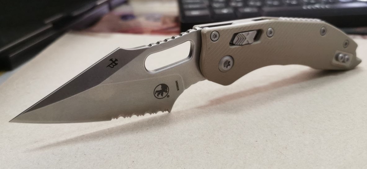 Порадовал себя новой игрушкой - репликой Microtech Stitch Ram Lok. Давно смотрел на разные варианты данной модели. Определенно у данного ножа есть харизма, которая меня и привлекла в нем. Берешь его и понимаешь, что у тебя в руках серьезный инструмент. Хотел конечно вариант с полным серрейтором, но за неимением отлично подошел и полусеррейтор. Надо сказать помимо внешки функционал ножа именно в таком варианте заточки тоже не разочаровал, так что по всем позициям, кроме разве что веса, Stitch в моем личном рейтинге ножей стоит на одном из самых высоких мест.