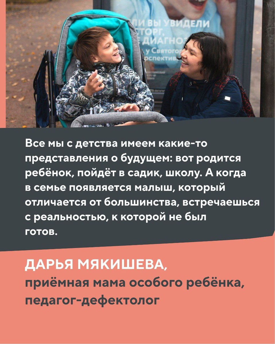«К сожалению, из-за разных искусственных преград "особенный ребёнок = особенная жизнь". А иногда хочется просто обычной жизни». В преддверии Дня учителя мы задавали педагогам, которые работают с особыми детьми, вопрос: «Сложно ли это?» Даша Мякишева — педагог-дефектолог по профессии, а ещё она приёмная мама Святогора, подопечного «Перспектив». Они познакомились, когда Даша работала в нашей программе в детском доме-интернате в Павловске, и вот уже почти 6 лет вместе. Даша и Свят ведут активную жизнь, а «Перспективы» их в этом поддерживают. Святогор несколько раз в неделю посещает наш детский Центр дневного пребывания. Благодаря этому, а также помощи няни, Даша смогла начать работать в школе. Взгляд мамы и педагога на важность включения особых детей и их семей в обычную жизнь – в карточках. ☀️Чтобы жизнь особых семей была не особенной, а обычной, подпишитесь на регулярные пожертвования на сайте нашей социальной кампании «Ничего особенного»: clck.ru/3PeBtS * Работа нашей программы